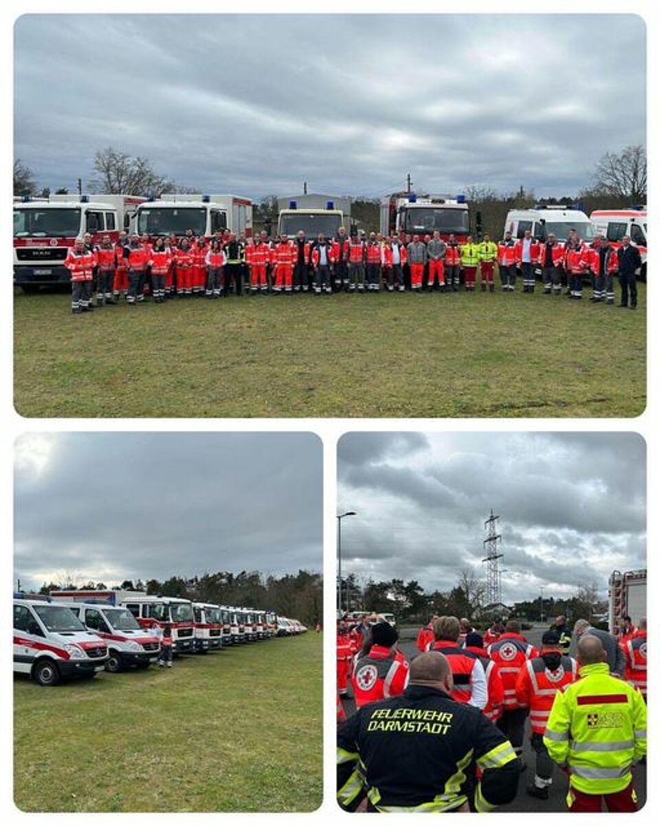 Wir waren mit den zugesagten 5 Kräften vertreten, unser Bereitschaftsleiter Markus Zedelmayer zusammen mit Markus Krieb als Kraftfahrer auf dem KTW-4 und Musa Kücük, Serkan Kücük zusammen mit unserem Vorsitzenden und stv. Bereitschaftsleiter Peter Schilling als Kraftfahrer auf dem GWBt. Weitere Beteiligte aus dem DRK Kreisverband Dieburg waren mit dem GWSan (Gerätewagen Sanität) Fabian Busch aus dem OV Dieburg mit seinem Kraftfahrer Cedrik Schäfer aus dem OV Groß-Umstadt.